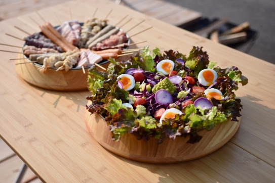 本日のメニューは、新鮮野菜と串焼きの盛り合わせ!