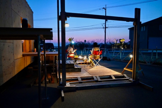 絶景露天風呂でゆっくり温まり、海耕舎の拠点「渚の交番」に向かいます。