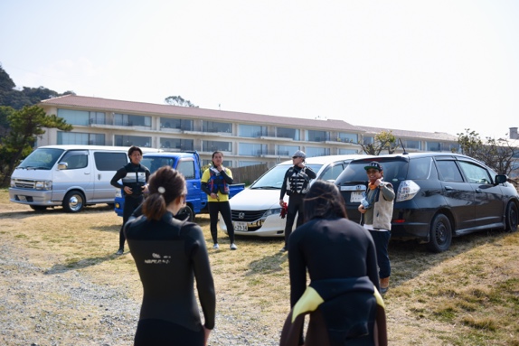清水さんはサーフィン経験のあるベテラン。一方、苅北さんはつい数年前まで足がつかない海で泳ぐことができなかった初心者です