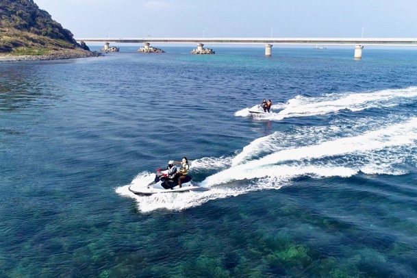 角島大橋の下をくぐったり、希望すれば急旋回でちょっとしたスリルも味わせてもらえます。