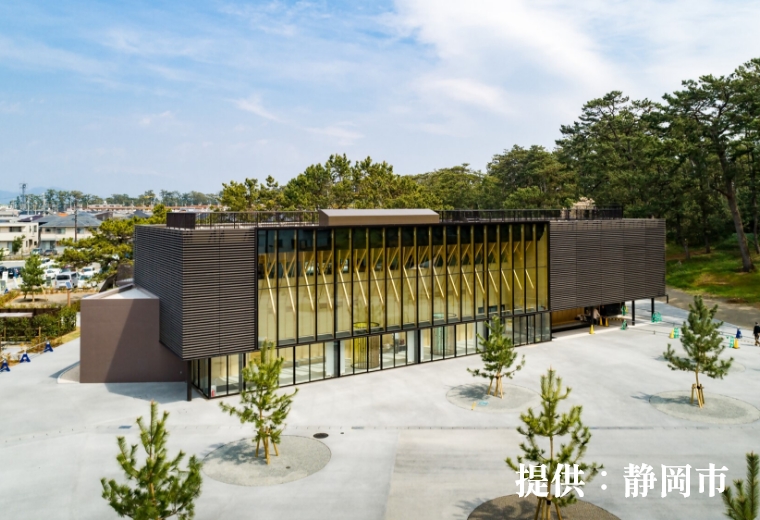 「三保を知る」「道しるべ」という意味が込められた三保松原のガイダンス施設。