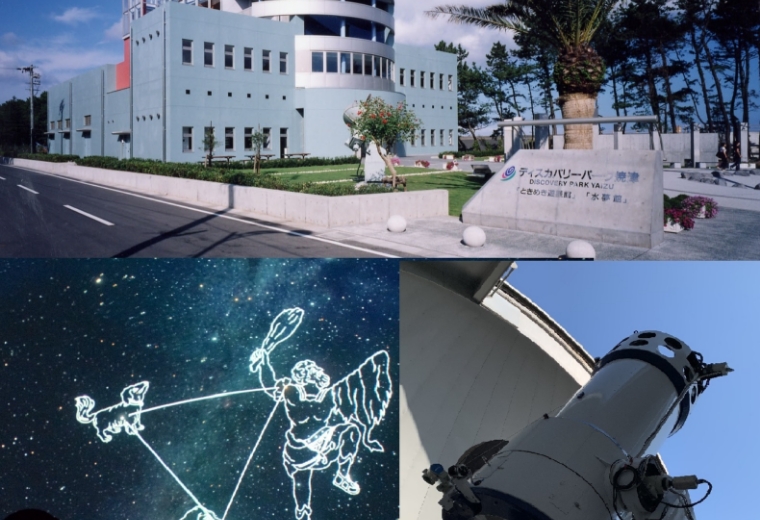 東海地区最大級の口径80cmの天体望遠鏡が設置された天文科学館。これは、焼津が生んだ世界的望遠鏡製作者の法月惣次郎さんが最後に製作した大型望遠鏡です。他にも、プラネタリウム・体験型科学展示など小さな子供から大人まで楽しめる施設です。