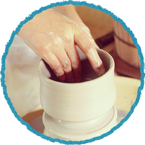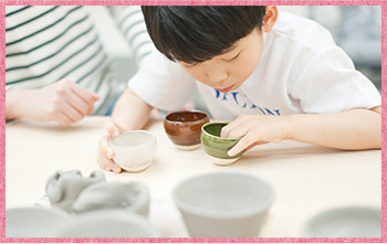 ご飯茶碗・小皿・湯呑などの用意された素焼きの器に、好きな絵や柄を描いていく絵付け体験。小さなお子さまでも楽しめるお手軽体験なので、きっと家族の思い出にもなることでしょう。