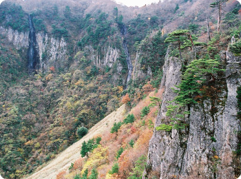 氷ノ山後山那岐山国定公園の中に位置し、切り立った崖の間を縫うように進んでいくと、名勝「三滝」が出迎えてくれる山深い渓谷です。芦津渓谷がある智頭町は総面積の9割が森林に囲まれており、その特異な環境を活用した「森林セラピー体験」が最近では人気です。県内唯一の森林セラピー基地として認定も受けており、森林浴効果を求めて、多くの県外観光客が足を運んでいます。