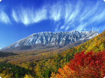 大山隠岐国立公園内に位置し、標高615mの高さはふもとから歩いて40分程で頂上にたどり着くことができるため、ハイキングコースとしておすすめです。日本の紅葉100選に選ばれたカエデ、ブナ、コナラ等の色鮮やかな紅葉はため息が出るような素晴らしい景色で来訪者を出迎えてくれます。