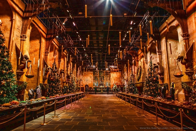 高さ5mを超えるツリーが並び、天井は400本以上のキャンドル。クリスマスの装飾で彩られた大広間に足を踏み入れれば、映画の幻想的なシーンが鮮やかによみがえります。