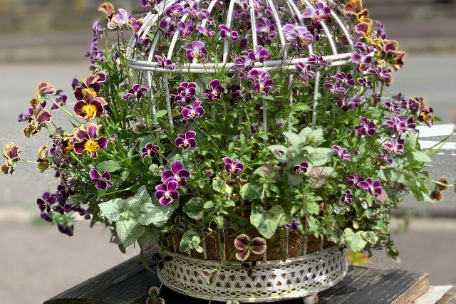 【秋田市・寄せ植えギャザリング体験レッスン】根っこのついた植物を花束のように手の中で束ねて器に植え込むギャザリングの手法を使って小さな寄せ植えを作ります。