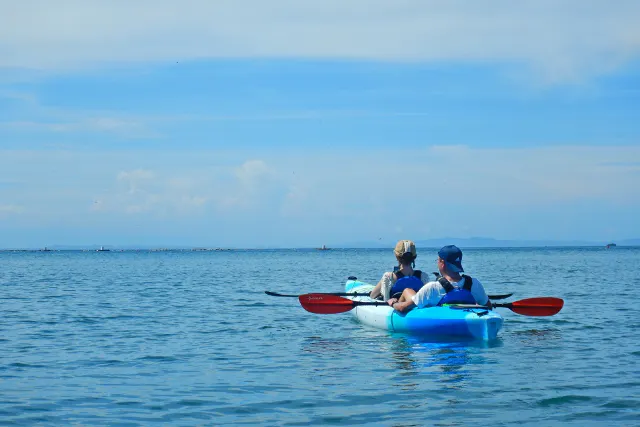 午前は陸上や海上でしっかり講習。午後は楽しいツーリング!静かな内房の海からスタートする海でのシーカヤック体験です。丁寧なレクチャーがあり、初心者安心!