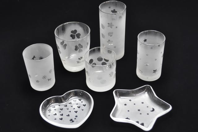 既製のグラスまたはお皿 1個にサンドブラストで模様を彫ります。 ■作品のお受け取りについて 当日お持ち帰りいただけます。 |