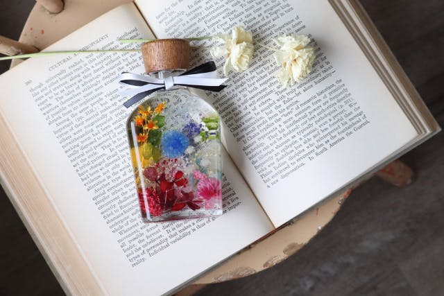 ①来店・受付 ご予約のお時間までにご来店いただき、2階へ。 ②説明 ハーバリウムの作り方を説明します。 ③体験 プリザーブドフラワーやドライフラワーをボトルに詰めていき、ハーバリウム液を流します。 ④解散 完成したハーバリウムを梱包してお渡しします。 ※上記の流れは目安です。 当日の状況によって流れが変更になる場合がありますので、あらかじめご了承ください。 |