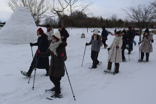 ①集合・受付 受付を済ませてください ②説明 アクティビティの流れを説明します(5分) ③体験の内容 ・アクティビティ会場まで徒歩移動 ・スノーシューを装着 ・散策ルートに沿ってスノーシューハイクをお楽しみ頂きます(30分) ・地球村温泉へ移動し温泉入浴 ※上記の流れは目安です。 当日の状況によって流れが変更になる場合がありますので、あらかじめご了承ください。 |