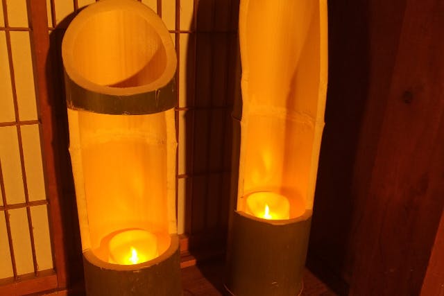 竹行灯(1個)・竹湯呑(2個)をお作りいただけます。 ■サイズ(目安) 竹行灯:直径約10cmx高さ約50cm 竹湯呑:直径約7cmx高さ約10cm ■作品のお受け取りについて 当日お持ち帰りいただけます。 有料での発送も可能です。 |