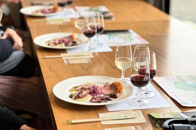 | 料金に含まれるもの | 体験料、消費税(登録事業者のみ)、ガイド料、ワイナリー見学、ワイン代、マリアージュフード代 |