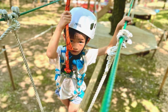 【集合・受付】受付にて誓約書をご記入頂いた方から順にハーネスをお付けしていきます。お荷物は荷物ボックスがございますのでそちらをご利用ください。軍手が必須になりますので着用し、ハーネス場にお越しください。(約15分) 【体験の流れ】ハーネスを付けた後、安全講習を行います。スタッフが説明後体験者様に練習して頂きます。(約15分) 安全講習終了後、コーススタートです。各コース所要時間が変わります。(トライアルコース:20分) 【終了】ゴール後ハーネスを外して終了 |