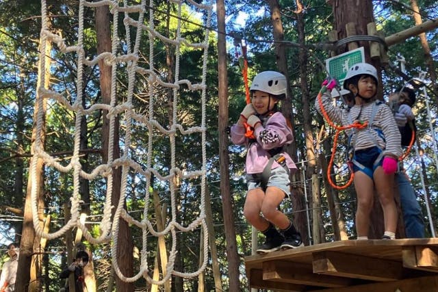 【集合・受付】受付にて誓約書をご記入頂いた方から順にハーネスをお付けしていきます。お荷物は荷物ボックスがございますのでそちらをご利用ください。軍手が必須になりますので着用し、ハーネス場にお越しください。(約15分) 【体験の流れ】ハーネスを付けた後、安全講習を行います。スタッフが説明後体験者様に練習して頂きます。(約15分) 安全講習終了後、コーススタートです。各コース所要時間が変わります。(チャレンジコース60分) 【終了】ゴール後ハーネスを外して終了 |