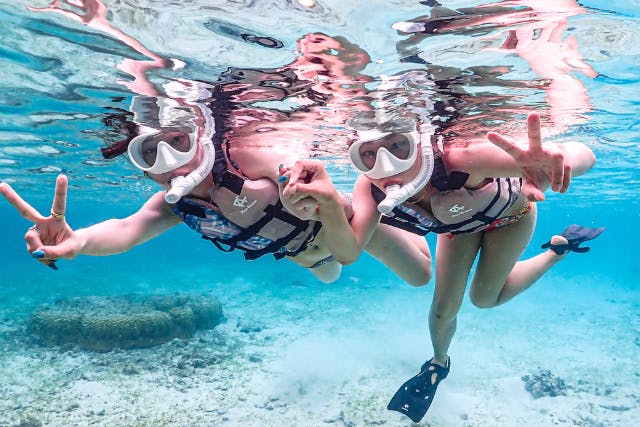<ツアーのスケジュール> 8:30/集合 〜健康チェック・同意書の記入〜 備品のサイズ合わせなど 入水前の注意事項説明・レクチャー 8:45/ツアー開始 9:00/ウミガメ発見!記念撮影をします 9:30/ツアー終了・お着替えなど 10:00/解散 ※目安の時間,タイムスケジュールとなります |