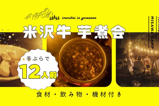 【芋煮会×焚き火×温泉】手ぶらでOK!米沢牛の芋煮会【12人前】(3時間)