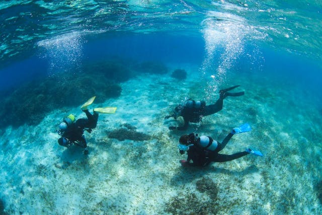 ①開催場所のビーチ集合(約5分) ②免責記入、着替え等(約20分) ③体験ダイビングについて説明(約20分) ④ビーチからエントリー(約10分) ⑤体験ダイビング(約40分)×2回 ⑥着替え、精算(約20分) ⑦現地解散(約5分) ※上記の流れは目安です。 当日の状況によって流れが変更になる場合がありますので、あらかじめご了承ください。 ■集合について ・当日の集合場所は海況、風向きの関係で前日に決定しておりますので、詳細は予約後に連絡いたします。 |