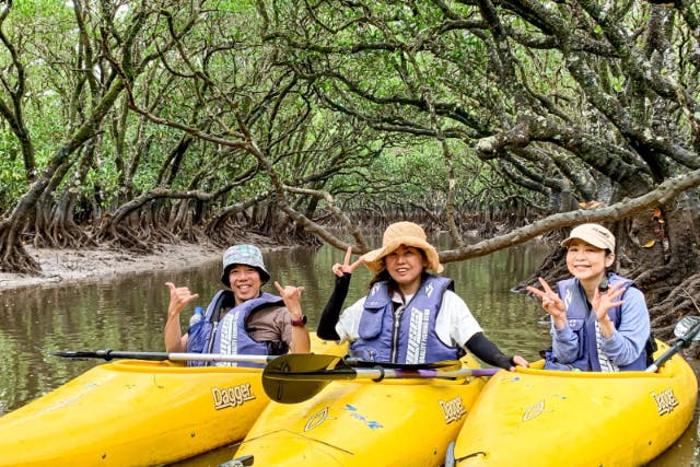 [集合・受付] 集合し、受付を済ませてください。 [体験の流れ] ①体験場所まで車で移動、概ね40分 ②駐車場より金作原原生林体験を開始(トレッキング)、概ね2:00〜2:30程 ③移動して昼食 1:50程(昼食を含む) ④次の体験場所まで移動、概ね40分 ⑤マングローブカヌー体験、概ね2:30〜3:00 ⑥体験終了後、各集合開始場合まで移動、(現地現金払いの方は清算) [解散] 全工程時間、概ね8:00〜9:00程 ※ 当日の潮汐によって工程順が変わる事もありますので、ご了承下さい。 |