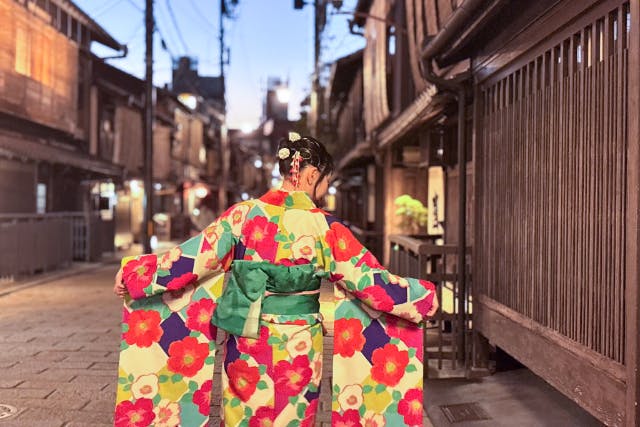 ①集合・受付 予約日時になりましたらご来店ください。 ②体験準備・移動 お気に入りの1着を見つけて着物に着替えましょう!(5~10分) ③体験の内容 【着付け】 着たい着物が決まったらスタッフが着付けを行います。(5~15分) 【着付け】※オプション ご希望であればヘアセットも行います。(5~15分) 【タクシー移動】 高台寺エリアまでのタクシー(片道)付きなので、観光スポットに楽々移動! 着物でのお出かけを存分に楽しめちゃいます! ④解散 着物を満喫したら店舗へ戻って返却をお願いします。(17:30までに要返却) ※上記の流れは目安です。 当日の状況によって流れが変更になる場合がありますので、あらかじめご了承ください。 |