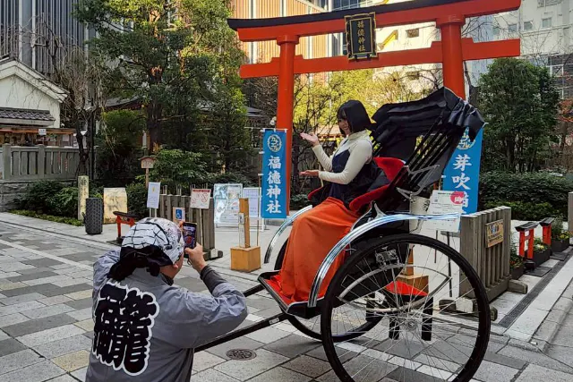 人力車発祥の地、日本橋を巡る特別な60分コース。