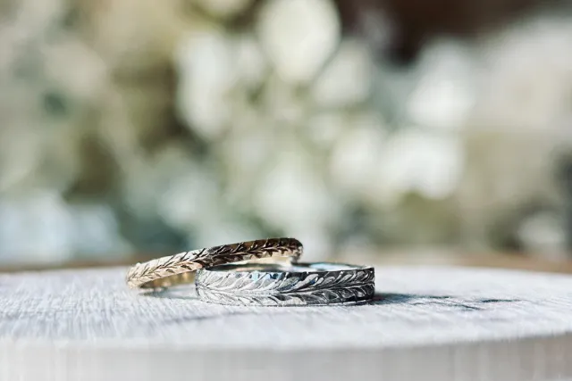 ハワイアンジュエリーの 伝統的な彫り模様を刻んだ、 世界にひとつだけの結婚指輪を お作りいただけます。 ハワイアンジュエリーの 始まりと言われる ジュエリーに刻まれていた言葉が "Homanao Mau" (ホオマナオマウ)。 「いつも覚えている」という 意味を持つこの言葉のように、 指輪に刻まれたモチーフが これからの日々に ずっと寄り添い続けます。 ふたりでリングを手作りした後は、 本場ハワイで修行した 日本屈指の彫り職人が おふたりのために一本ずつ、 手作業で丁寧に彫り上げます。 機械では決して表現できない 繊細な彫り模様と 深みのある仕上がりは、 職人の技が宿る icci代官山だけの特別な一本です。 【選べるモチーフ】 マイレ 神聖なものとのつながりを表し、 長く続くようにという 意味が込められたハワイアンを 代表するモチーフです。 何ミリ幅の指輪にも施すことが可能です。 シャイニーマイレ 通常のマイレより 輝きが増したデザイン。 葉部分にポカドットを入れることで 模様にメリハリが生まれます。 何ミリ幅の指輪にも施すことが可能です。 スクロール 渦巻き状の模様が美しいデザイン。 選ぶ幅によって スクロールの数が変わり、 異なる表情を楽しめます。 スクロール&リーフ スクロールにリーフを組み合わせた 柔らかな印象が魅力のモチーフです。 スクロール(ポカドット仕上げ) ポカドットを施すことで 模様にメリハリをつけた スクロールがメインのモチーフ。 4mm幅以上におすすめです。 ウィッグルスクロール ジグザグ模様で スクロールを表現した 個性的なデザイン。 4mm幅以上におすすめです。 オールドイングリッシュ スクロールの中を ウィッグルで埋めた 重厚感のある本格派デザイン。 5mm幅以上におすすめです。 【選べる素材】 Pt950(プラチナ) 白く美しい輝きが続く 結婚指輪の定番素材。 ハワイアンモチーフの繊細な彫りを 美しく引き立てます。 K18YG(イエローゴールド) 上品な黄金色がクラシカルで 存在感のある仕上がりに。 ハワイアンモチーフとの相性も抜群です。 K18CG(シャンパンゴールド) 落ち着いた上品な色味が 日本人の肌によく馴染みます。 光によって表情が変わる 柔らかなアンティーク調の素材です。 【選べるリング幅】 2mmから5mmまで 1mm刻みでお選びいただけます。 華奢で繊細な 印象の細めのリングから、 存在感のある幅広のリングまで、 おふたりのお好みに 合わせてお選びください。 ※6mm幅以上をご希望の場合は 事前にご相談をお願いします。 【選べるデザイン・仕上げ】 形は甲丸と平打の2種類。 仕上げは鏡面・マットの2種類から お選びいただけます。 【お品物のお受け取りについて】 リングは一度お預かりし、 本場ハワイで修行した彫り職人が 手作業で丁寧に彫り上げます。 通常6週間〜で お渡しとなります。 全国郵送にも 対応しておりますので、 遠方の方もお気軽にご参加ください。 |