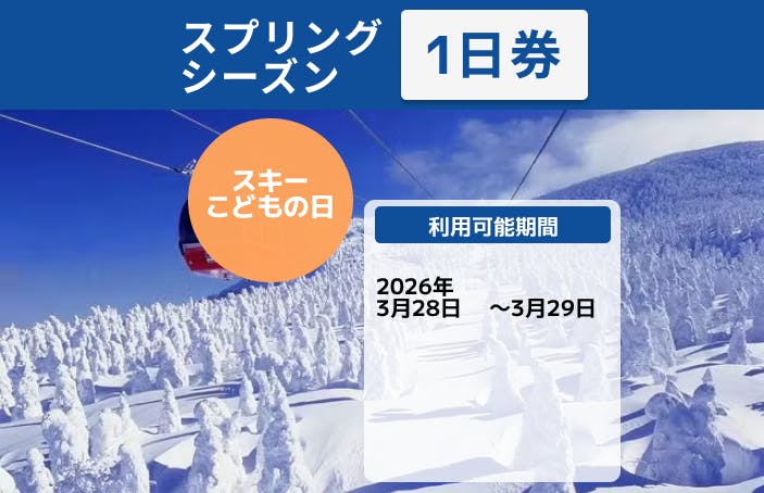 【スプリングシーズン・スキーこどもの日のみ】蔵王温泉スキー場 リフト・ロープウェイ 1日券