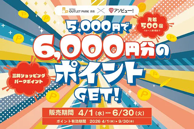 【最大5,000円OFF】三井アウトレットパーク 倉敷のGap Outletなど約120店舗で使える6,000ポイント