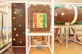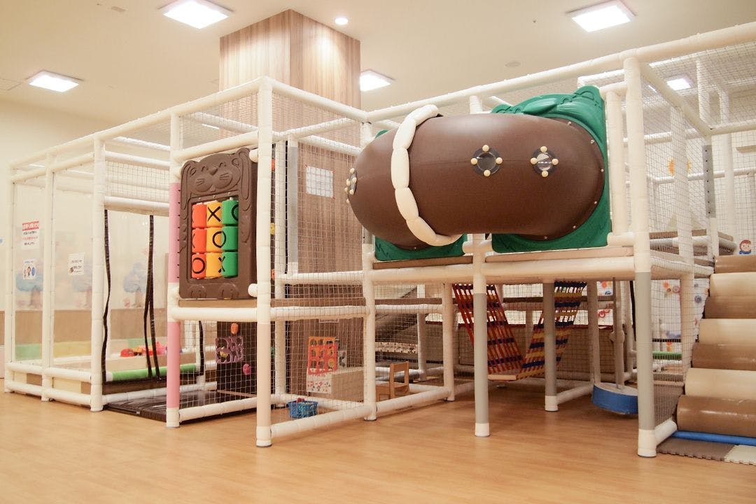 天候を気にせず親子で快適に過ごせる屋内キッズパーク 高い天井を活かした「巨大ジャングルジム」や「トランポリン」、「ミニターザン」は、元気いっぱいのお子様に大人気。汗だくになって遊んだ後は、「おままごと」や「さかな釣り」などのごっこ遊びでゆっくり楽しむこともできます。0〜2歳専用の「よちよちスペース」も完備。つくば店は、「つくば牛久IC」からすぐの好立地で、お買い物ついでに時間を気にせずたっぷり遊べます。