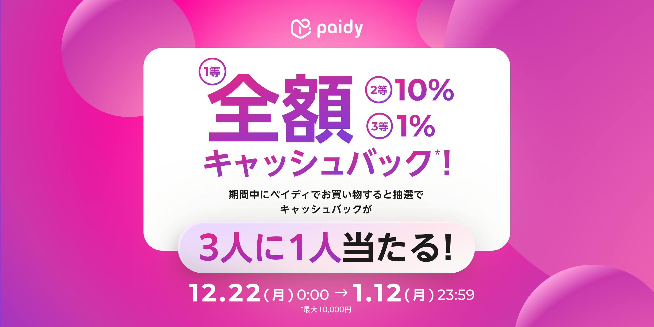 【最大全額キャッシュバック!】あと払いペイディでお得なキャンペーン実施中