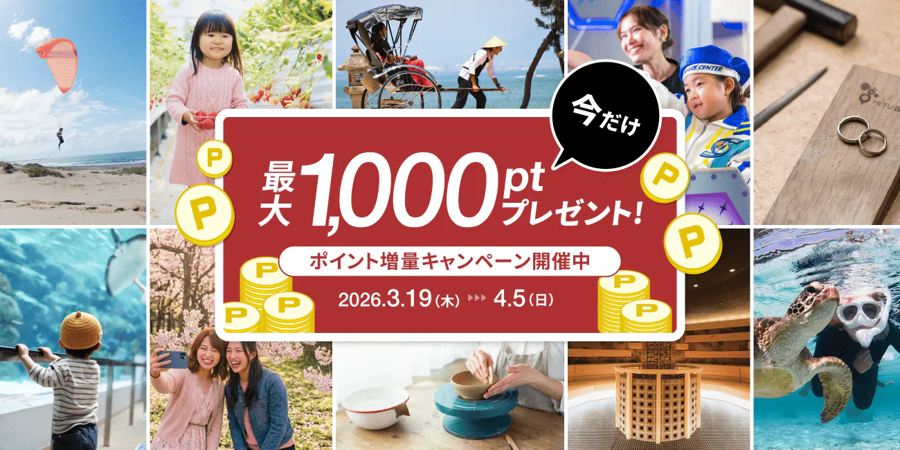 【今だけ最大5%UP】春のお出かけを更にお得に。ポイント増量キャンペーン実施中!ポイントをチャージしてお得に楽しもう!