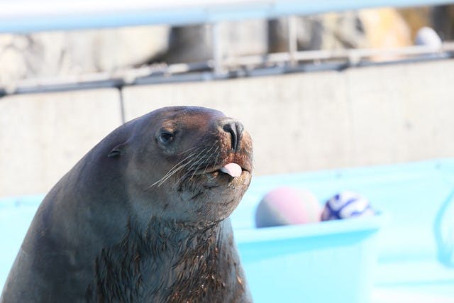 水族館の人気者・ゴマフアザラシも日向ぼっこが大好き。目をつむってゴロゴロしている表情やしぐさがとても可愛らしいんです。ほかにも、芸達者なハイイロアザラシやアゴヒゲアザラシにも会えますよ。