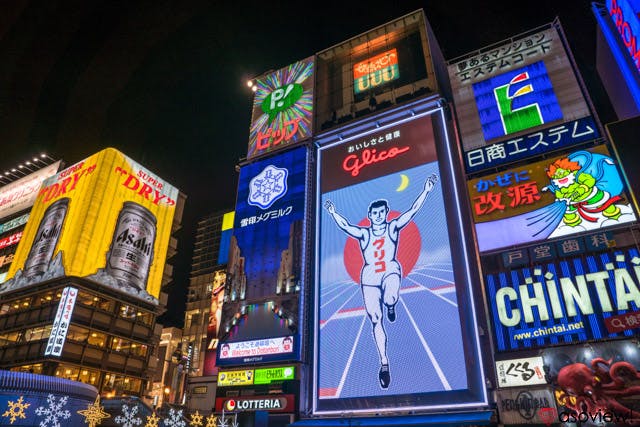 また、道頓堀といえば巨大看板が名物。「グリコ」「くいだおれ太郎」「かに道楽」など、撮影スポットには事欠きません。巨大看板をたどりながら、たこ焼きや串カツを食べ歩きましょう。「食い倒れの街」の異名をもつ道頓堀にふさわしく、リーズナブルで美味しいお店がひしめき合っています。