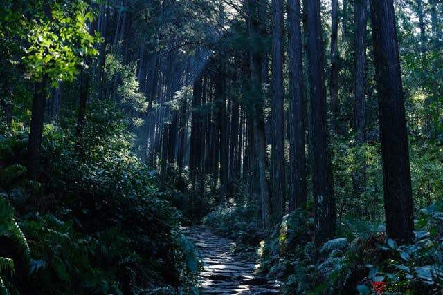 「紀伊山地の霊場と参詣道」として世界遺産に登録された熊野古道は、三重県、奈良県、和歌山県、大阪府にまたがる参詣道です。いずれも和歌山県にある神社、「熊野三山(熊野本宮大社、熊野速玉大社、熊野那智大社)」へと通じています。うっそうと茂る木々、苔むす石畳、辺りを包む厳かな空気は神聖そのもの。パワースポットとしても注目を集めています。