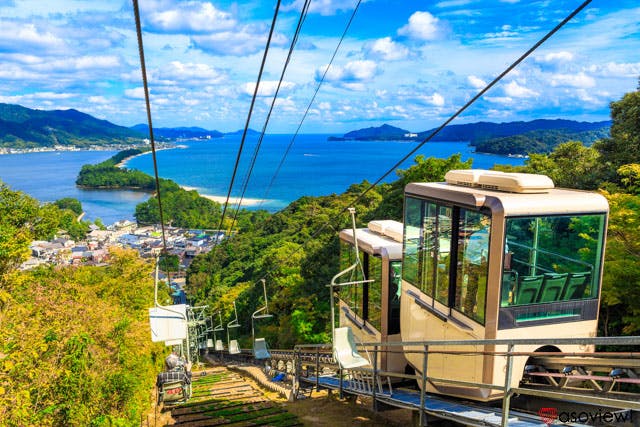 天橋立の全景を見るなら、文珠山山頂のミニ遊園地「天橋立ビューランド」がおすすめ。ここから望む天橋立は、天に昇る龍に見えるということで、「飛龍観」と呼ばれています。頭をかがめて足の間から逆さに天橋立を眺める股のぞきを楽しめる「股のぞき台」、360度パノラマが見事な展望台「飛龍観回廊」など、絶景をとことん満喫できる工夫がいっぱいのスポットです。