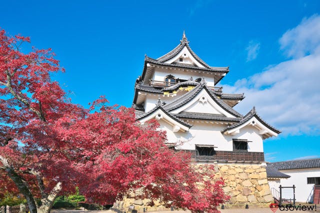 1622年築城の彦根城は、井伊氏14代の居城。天守閣と多聞櫓が国宝に指定されています。切妻破風、入母屋破風、唐破風と3つの破風(屋根の妻側の造形)組み合せた天守閣の造形美は必見。また、天守閣からは琵琶湖、伊吹山、比良山が一望できます。じっくり彦根城を眺めるなら、「お堀めぐり」がイチオシ。江戸時代建造、井伊家ゆかりの御好屋形船が彦根城内堀を運行しています。梅、桜、紅葉、雪景色。四季折々の彦根城を楽しみましょう。
