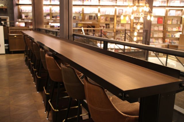 カフェ&バーには何冊でも、好きなだけ本を持ち込むことができます。珍しい洋書など、普段なかなか触れられない本をじっくり読んだりと、新しい出会いを楽しめます。ちなみに貴重そうに見えるディスプレイされた洋書も、手の届く範囲ならすべて読むことができるとのこと。「気になる本があったらスタッフに聞いてみてください」と林さん。高いところにある本も、脚立などでスタッフの方が取ってくれるそうです。(※一部届かないものもあります)