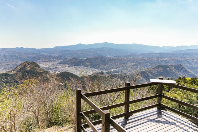 「山頂展望コース」にある標高452mの山頂展望台から360度の大パノラマが楽しめます。