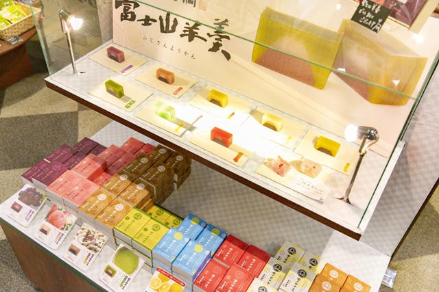 地元の老舗「富士菓匠 金多留満」の銘菓「富士山ようかん」(1個800円)。羊羹には富士山が描かれ、種類は8種類と豊富。みかん、レモン、ミルク、落花生はパークオリジナルのフレーバーです。