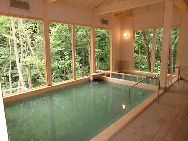 また露天風呂は、優しく漂う檜の香りと森の香りをはじめ、心休まる川のせせらぎや体に吹きつける高原の風など、水上の自然を全身で感じながら入浴できるのがポイント。それに併せて夏は新緑、秋は紅葉、冬は雪見風呂など、四季折々の絶景を楽しめるのも見逃せません。