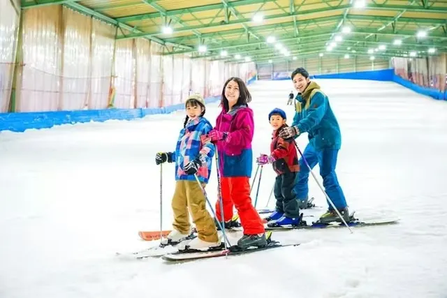 池袋から電車で40分ほどでアクセスできる「狭山スキー場」は屋内人工スキー場。天候を気にせずいつでも雪遊びが楽しめるので、子供連れにもぴったり。10月下旬から翌年3月下旬までの長い期間利用できます。