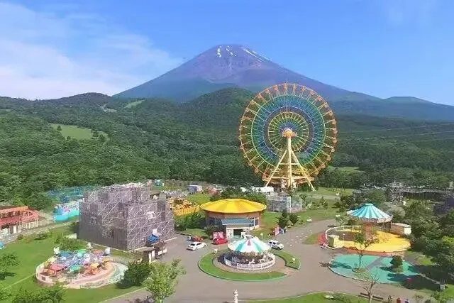 富士山2合目、標高約1,200mに位置する遊園地ぐりんぱは、雄大な自然に囲まれたファミリー向けレジャースポット。園内から望む富士山の絶景は圧巻で、四季折々の風景とともに一日たっぷり遊べます。