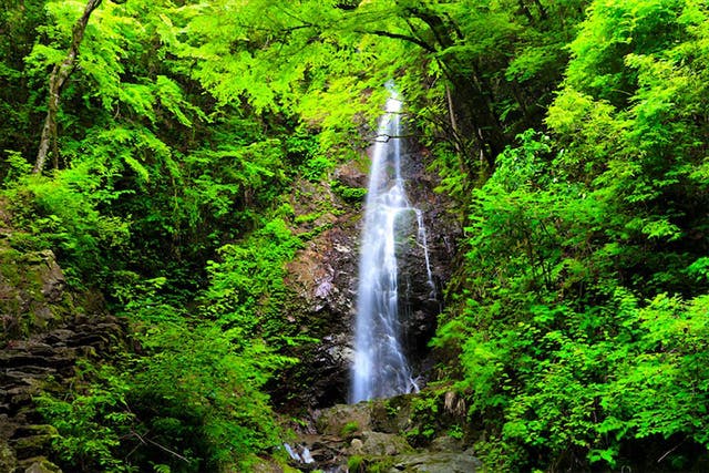落差は4段で約60m、とても神秘的で古くから大蛇が住むと言い伝えられているとか。冬は美しく結氷し、毎年8月中旬に開催される「払沢の滝まつり」ではライトアップされ幻想的な滝を見られます。