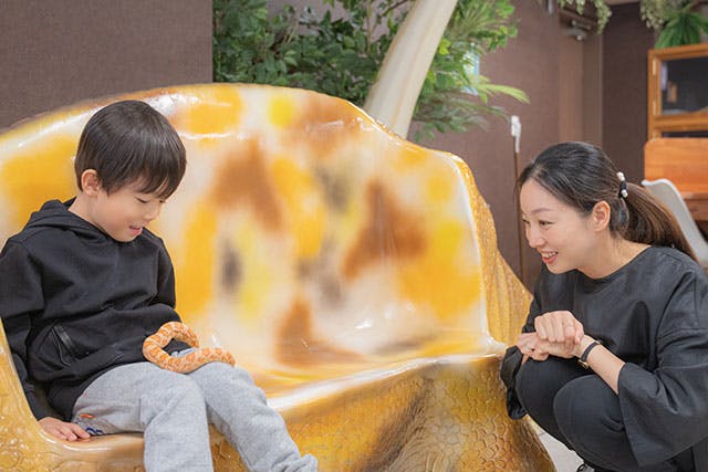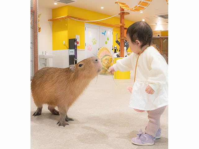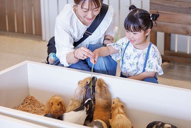都内最大級の約1,200平方メートルの広さを誇る館内は、メインエリアがとにかく広大! そして営業時間内であれば時間制限ナシ。順路がなく館内を自由に歩き回れ、子どもたちのペースで時間をかけてじっくりゆったり楽しめます。最初緊張していても、10分ほどエリア内にいれば誰もがその優しい雰囲気で慣れてくるのも不思議!動物たちの優しさや癒しを全身で感じ、受け止めてくださいね。
