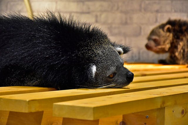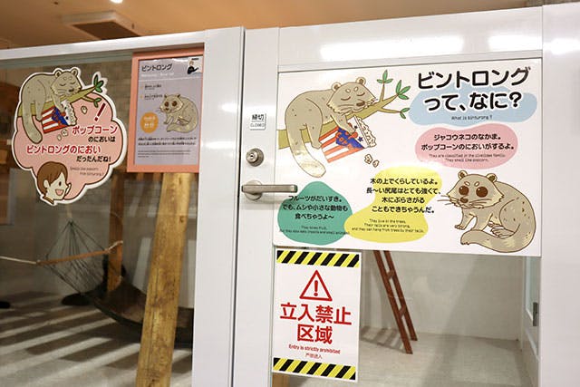 香ばしい香りに気づいたら、ぜひビントロングのエリアへ。ジャコウネコ科で、真っ黒&ふさふさの姿から“クマネコ”とも呼ばれ、尻尾下の臭腺からなんと「ポップコーン」の香りがするんです!「何の香りに似ている?」なんてクイズを出せば、子どもも率先して匂いを感じたり、ビントロングの習性に興味津々になること間違いナシですよ。