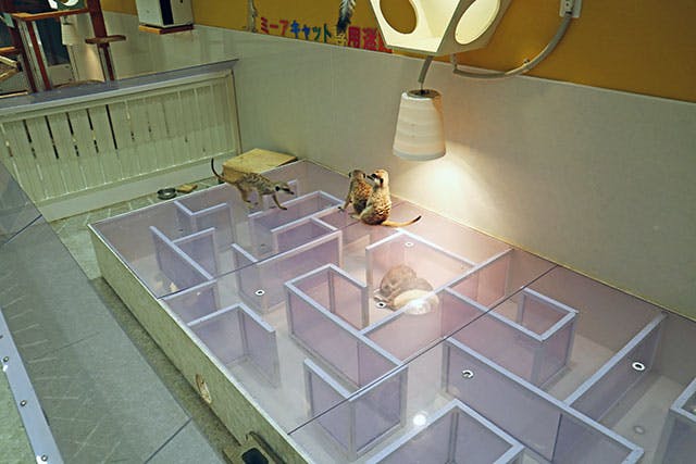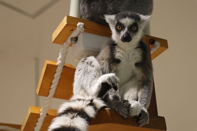 メインエリア奥の「カピバラとワオキツネザルの部屋」では、全9種類の動物たちが一緒に暮らしています。まったり過ごすカピバラを眺めつつ、目線を上げればナマケモノがのっそりと移動中。「え!ワオキツネザルがミーアキャットに遊んでほしくて近づいている!」というような、ほかの動物園ではありえないコラボが目撃できるかも!?