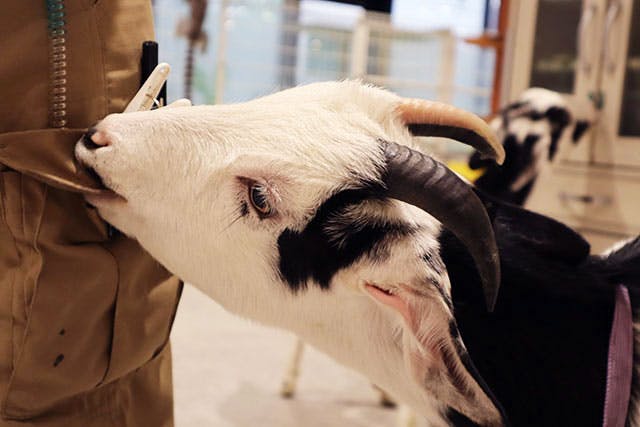 パンダヤギが「なでて~」とアピールしてくることもあり、自由奔放な動物たちの姿にほっこりしちゃいます。