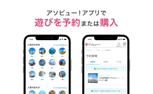 ・対象期間でアソビュー!公式アプリを初めてダウンロードされた場合でも、アソビュー!公式アプリで決済された2回目以降の予約・購入には、今回のキャンペーンは適用されませんので、ご注意ください。