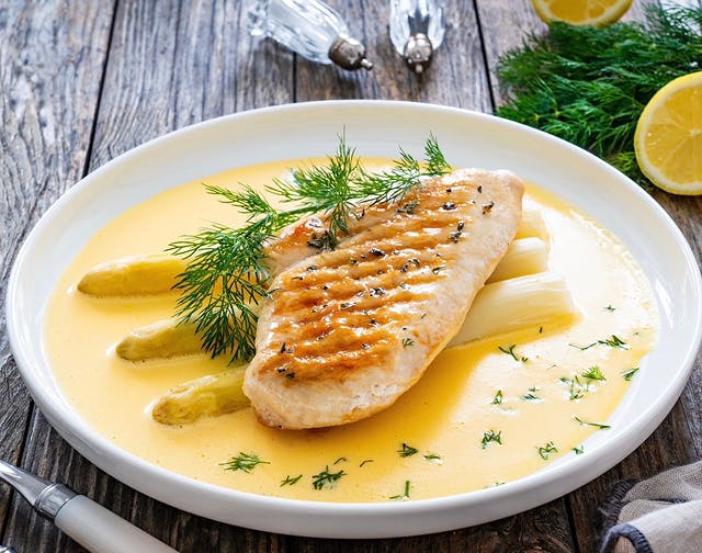 シュパーゲルと白身魚のオーロラソース(30食/日)