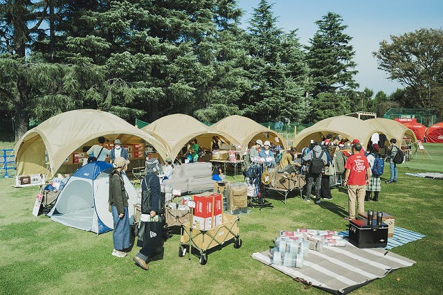 芝生に寝転がってのんびり過ごせるピクニックエリアでは、サンシェードやチェアなども完備。「Coleman」製アイテムを使いながら、イベントで購入したフードを楽しめます。